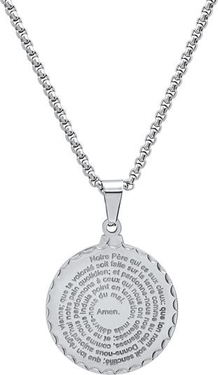 A sentimental, stainless steel pendant necklace that reads the Notre Père.