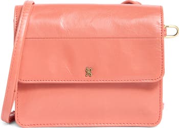 Brushed antique hardware and a luxe leather design distinguish a compact bag that's perfect for securing your cards, phone and other essentials.