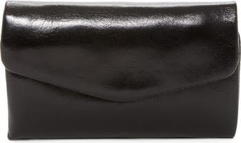 Smooth leather offers a refined appearance for a snap-flap wallet that stylishly secures your cards and cash.