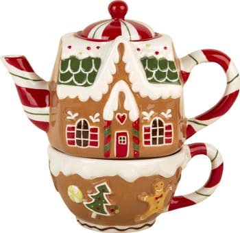 Serve up a cup of Christmas cheer with this festive gingerbread-house teapot and mug set that's perfect for holiday gatherings and quiet moments.