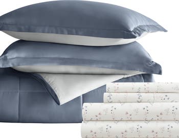 - Includes comforter, one flat sheet, one fitted sheet, two reversible shams and two pillowcases