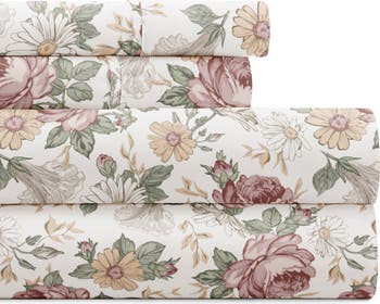 Refresh your bedroom or guest room with this floral printed sheet set made from wrinkle-resistant microfiber with a soft, double-brushed finish.