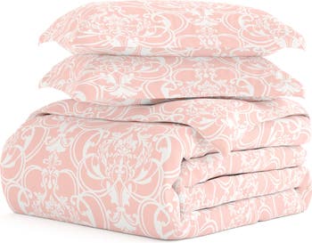 Add a pop of color to your bedroom decor with the beautiful Romantic Damask 3-Piece Duvet Cover Set by HOMESPUN. We crafted this product with your ultimate comfort in mind. It is ultra soft and velvety smooth. The microfiber construction is durable, wrinkle resistant, and 100% hypoallergenic! This Duvet Cover Set is the perfect addition to any bedroom!