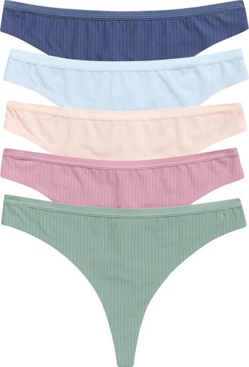 Upgrade your underwear drawer with this assorted pack of striped and seamless thongs.
