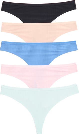 Upgrade your underwear drawer with this assorted pack of striped and seamless thongs.
