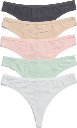Upgrade your underwear drawer with this assorted pack of striped and seamless thongs.