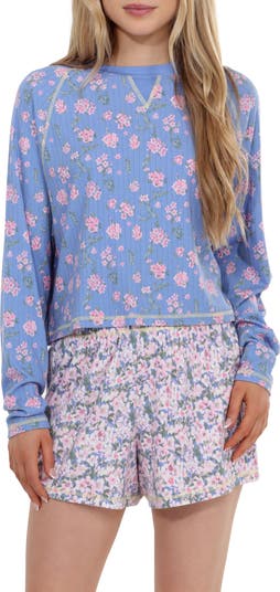 These ribbed jersey PJs with competing floral patterns and contrast stitching turn any night into a fun slumber party.