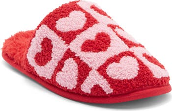 Give in to restoring comfort with these plush fleece scuff slippers with a checkerboard heart pattern and a textured grip sole for just the right amount of traction.