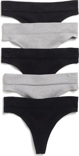 Upgrade your underwear drawer with this assorted pack of rib-knit thongs.