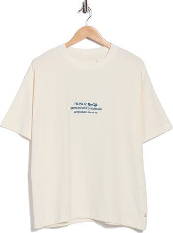A cool retro logo centers this everyday T-shirt cut from soft cotton jersey in a comfortably oversized fit.