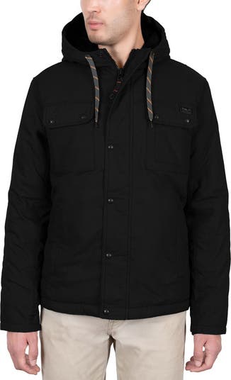 Stay cozily warm this season with a hooded jacket with a snap front and multiple pockets for utility.