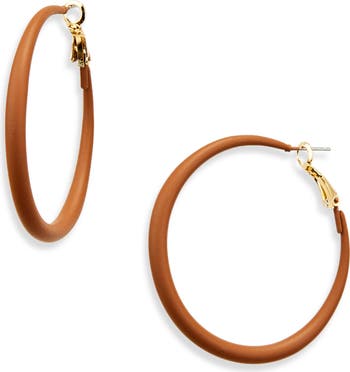 Bring a pop of color to your look with coated hoop earrings fashioned in a trendy tapered silhouette.