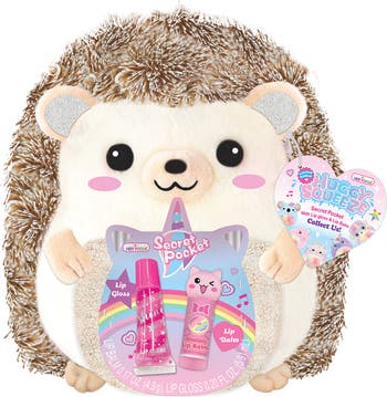 Your kiddo will love cuddling this squeezable plush hedgehog that includes a secret pocket with lip balm and gloss.
