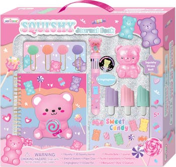 - Includes 1 journal with 3D squishy decoration, 1 novelty squishy, 1-10 color pen with novelty topper, 3 novelty highlighters, 4 pompom paper clips and 1 sheet sticker