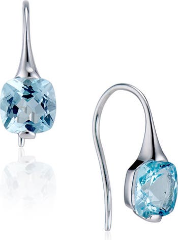 14K White Gold Cushion Cut Blue Topaz Drop Earrings
