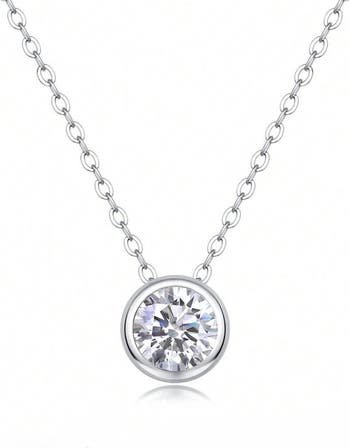 Bezel-set moissanite adds brilliant sparkle to this eye-catching necklace plated in bright 14-karat gold.