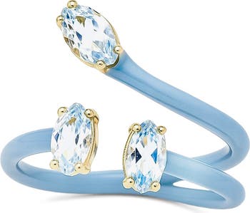 A trio of marquis-cut stones and colorful enamel finish deliver a playful update to a faux-stack ring finessed with gleaming 14-karat gold plate prongs.