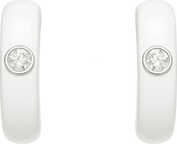 Round-cut stones and colorful enamel finish deliver a playful update to a huggie hoop earrings finessed with gleaming 14-karat gold plate setting.