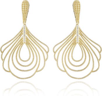 A row of white topaz add a burst of shine to drop earrings with a bubbly texture and warm 14-karat-gold plating.