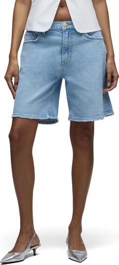 Rock a fresh silhouette with roomy, longer-length denim shorts crafted from rugged nonstretch denim and finished with slightly fraying hems.