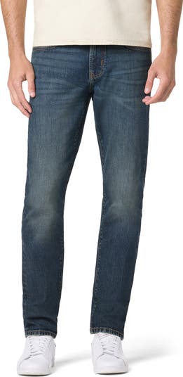 Fading and whiskering lend a broken-in look to these slim-cut straight-leg jeans made with minimal stretch for an authentic denim feel.