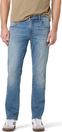 A faded wash brings a laid-back vibe to classic jeans cut from cotton-blend denim in a straight fit and designed with a touch of stretch for comfort.