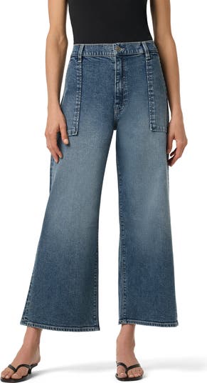 An faded-blue wash brings an elevated feel to wide-leg jeans made with a high waist, utility-inspired patch pockets and soft, low-stretch denim.