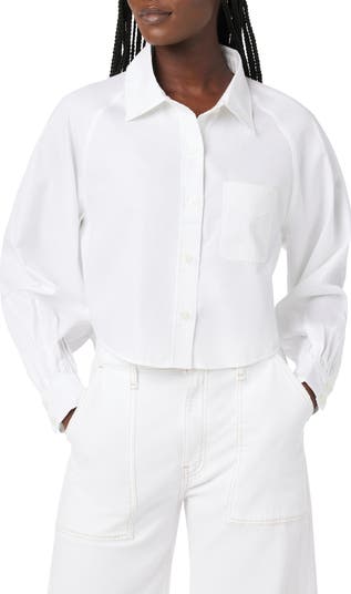 Raglan balloon sleeves add a pop of personality to this button-down top cut from cotton poplin.