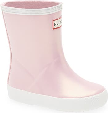 Giving new meaning to making a splash, this handcrafted rain boot has an iridescent finish that shimmers and shifts in color, even on cloudy, drizzly days. A rounded toe and flat, grippy sole allow kids to move comfortably while a soft jersey lining helps to keep feet dry.