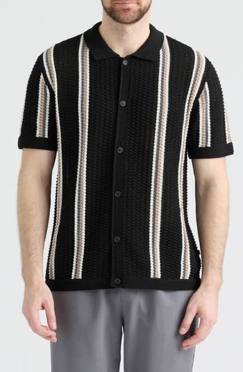 Sweater meets cardigan in this short-sleeve striped knit making it a polished addition to your work-to-weekend style.