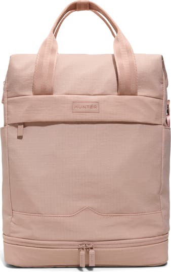 This spacious bag that can be carried like a tote or backpack is perfect for weekend getaways. Unsnap the sides to gain more space when hauling items home and unzip the bottom to pack footwear. The double interior compartment with multiple pockets, including a padded sleeve for a laptop, keeps items organized while you travel.
