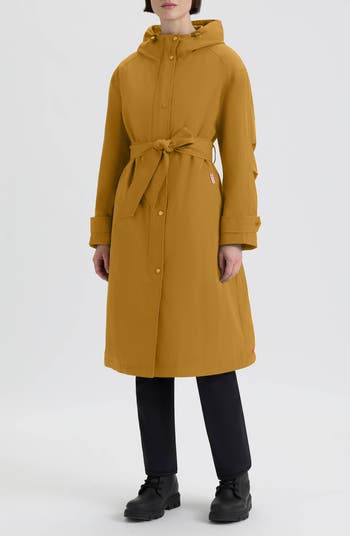 The weather will never dampen your sophisticated style when you wear this streamlined trench coat designed with a drawcord hood, storm placket and adjustable tie belt to keep all the elements at bay. The quilted back panel and lightweight insulation provides all-day comfort without bulk.