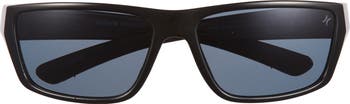 A flat browline enhances the wraparound silhouette of these effortlessly cool sunglasses fitted with polarized lenses.