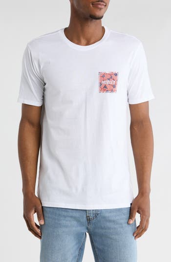 An abstract logo graphic marks the front and back of a casual crewneck T-shirt cut from pure cotton.