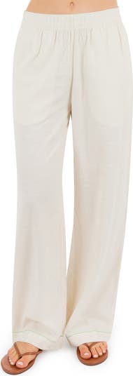 A bit of green topstitching at the hemline hints at the vacation-vibed graphic decorating the back pocket of these cool cotton-blend pants.