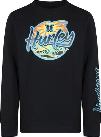 This cotton-forward long-sleeve T-shirt featuring a tropical logo graphic is perfect for kid-approved beachy adventures.
