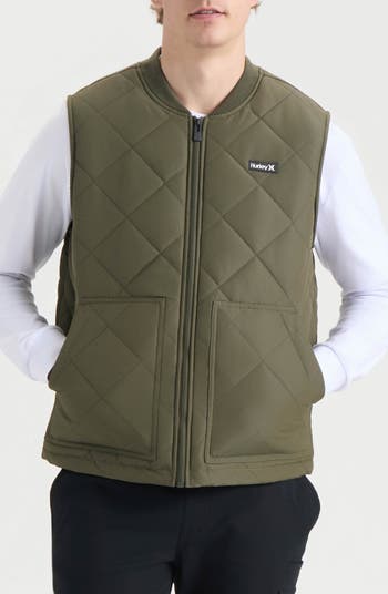 Stay warm in this water-repellent quilted ripstop vest that features roomy front pockets and soft faux-shearling lining.
