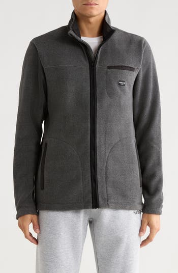 This mixed media jacket features a zip front closure, stand collar and a mix of chest and slant pockets for a modern, functional layer.