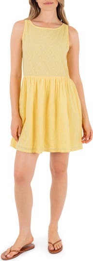 Sugar meets spice in a buttery yellow cotton dobby dress slashed with a slit at the back.