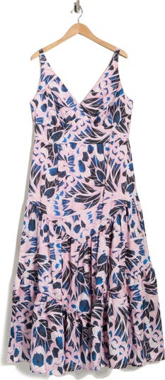 A tiered skirt inspires endless sashaying and twirling on the dance floor in a woven maxi dress covered in an eye-catching print.