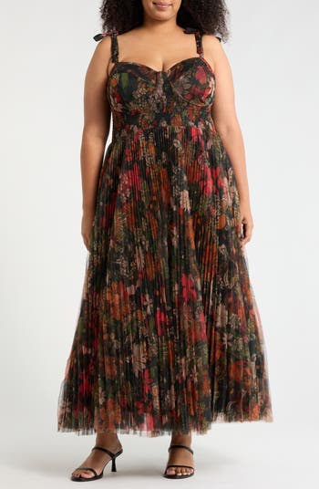Turn heads at your next event in this tie-strap gown finished with a flared, pleated skirt for graceful movement.