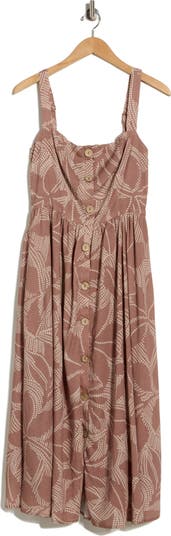 This printed babydoll dress features a front button closure and adjustable straps for an easy, customizable fit.