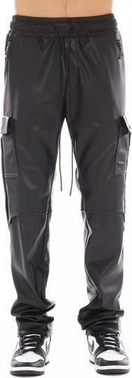 Show off moto-inspired style in smooth faux-leather cargo pants boasting statement drawstrings, a plethora of pockets and a comfortably tapered fit.