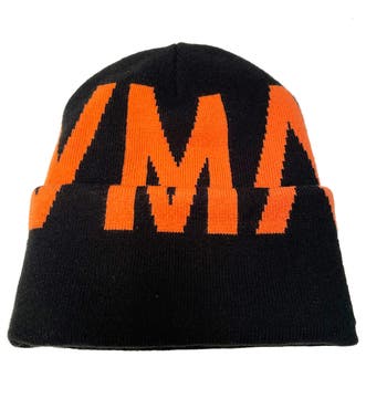Bold logo lettering patterns a cozy ribbed beanie you'll reach for again and again.
