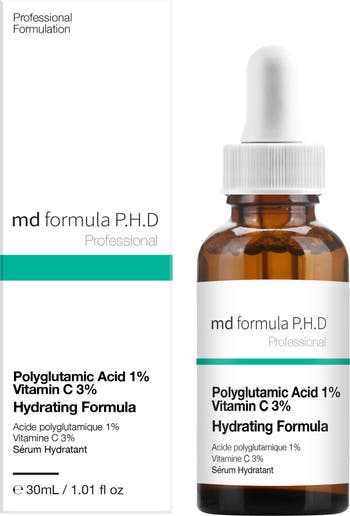 What it is: The MD Formula Hydrating Serum is a lightweight serum designed to give the skin a deep hydrating effect. This advanced professional serum contains a powerful cocktail of 2 key ingredients Polyglutamic Acid at 1% and Vitamin C at 3% Polyglutamic Acid is significantly more hydrating than Hyaluronic Acid. In this formula we are using Polyglutamic Acid with the aim of giving your skin the appearance of deep moisturisation. That healthy look. Vitamin C in this formulation is used with the aim of giving the temporary appearance of a brighter complexion, and for its collagen building characteristics. In some cases Vitamin C has led to a decrease in the temporary appearance of hyperpigmentation.