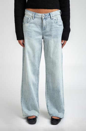 A low-rise waist refreshes these tried-and-true denim jeans cut in a baggy-leg silhouette that can be effortlessly cuffed.