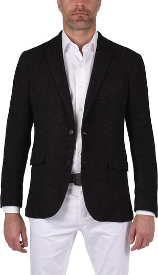 This subtly textured knit sport coat brings polished style with its notched lapels, welt and flap pockets and a classic two-button closure.