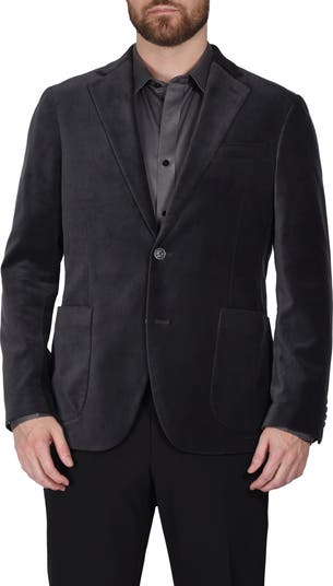 Step up your style with this dapper velvet sport coat featuring notched lapels, welt and patch pockets and a classic two-button closure.