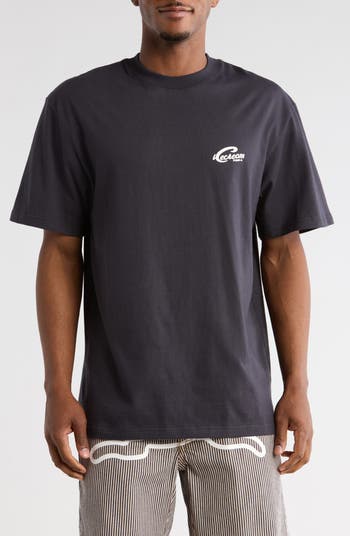 A slouchy fit enhances the street-savvy style of this cool graphic T-shirt cut from soft, breathable cotton jersey.