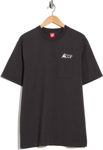 A running-dog logo graphic brings ahead-of-the-pack energy to this pocket T-shirt crafted from comfortable cotton jersey.